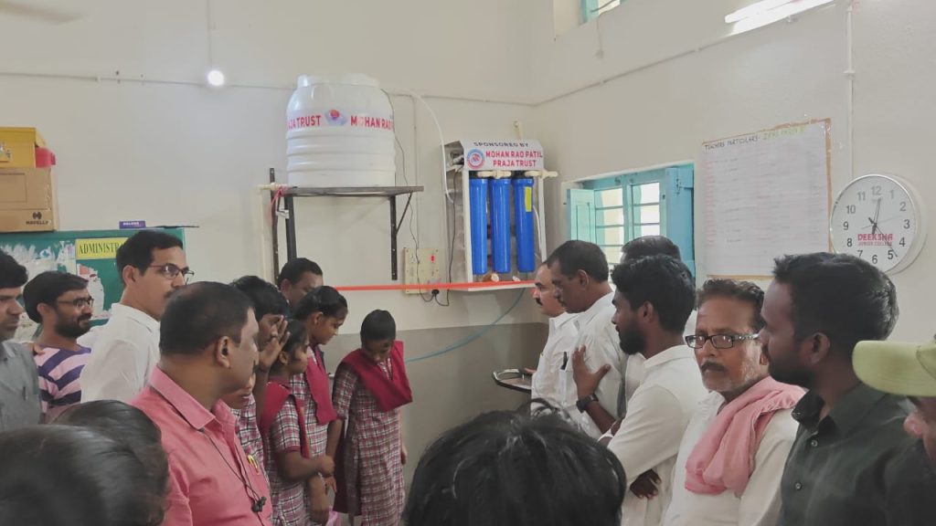 బైంసా:-విద్యార్థులు చిన్నప్పటి నుండే ఒక లక్ష్యాన్ని ఏర్పర్చుకుని ఆ లక్ష్య సాధన దిశగా చదివి మంచి పేరు ప్రతిష్ఠలు తీసుకరావాలని మోహన్ రావు ప్రజా ట్రస్ట్ చైర్మన్ మోహన్ రావు పటేల్ సూచించారు. గత మార్చి నెలలో పదో తరగతి విద్యార్థులకు పరీక్ష ప్యాడ్ల పంపిణీలో భాగంగా పార్డి (బి) ప్రభుత్వ పాఠశాలలకు వెళ్లిన మోహన్ రావు పటేల్ కు విద్యార్థులు నీటి సమస్య ఉందని చెప్పారు. ఈ క్రమంలో మోహన్ రావు పటేల్ ఆర్వో ప్లాంట్లను ఏర్పాటు చేస్తాననీ హామీచ్చారు. ఈ హామీ మేరకు పార్డి (బీ) ప్రభుత్వ ఉన్నత పాటశాలలో ఆర్వో ప్లాంట్లను ఏర్పాటు చేయగా, బుధవారం గ్రామస్థులు మరియు పాఠశాల సిబ్బంది మరియు విద్యార్తులతో కలిసి మోహన్ రావు పటేల్ ప్రారంభించారు. ఆర్వో ప్లాంట్లకు ప్రత్యేక పూజలు చేసి నీటిని పంపిణీ చేశారు. ఈ సందర్భంగా ఏర్పాటు చేసిన సమావేశాల్లో మోహన్ రావు పటేల్ మాట్లాడారు.